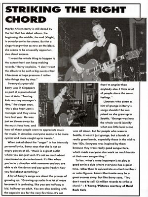 Twenty-six-year-old Barry was in Singapore as art of a promotional tour of Asia. "Touring Asia was my manager's idea," the singer says. "He's also Pearl Jam's manager and they came here last year. He was just so blown away by the music fans here, and how all these people seem to appreciate music for music. In America, everyone seems to be more cynical and more caught up in trends."