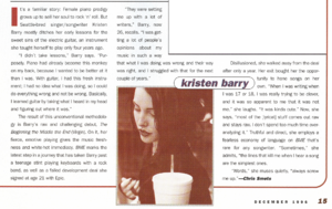 It's a familiar story: Female piano prodigy grows up to sell her soul to rock 'n' rock. But Seattle-bred singer/songwriter Kristen Barry mostly ditches her early lessons for the sweet sins of the electric guitar, an instrument she taught herself to play only four years ago.